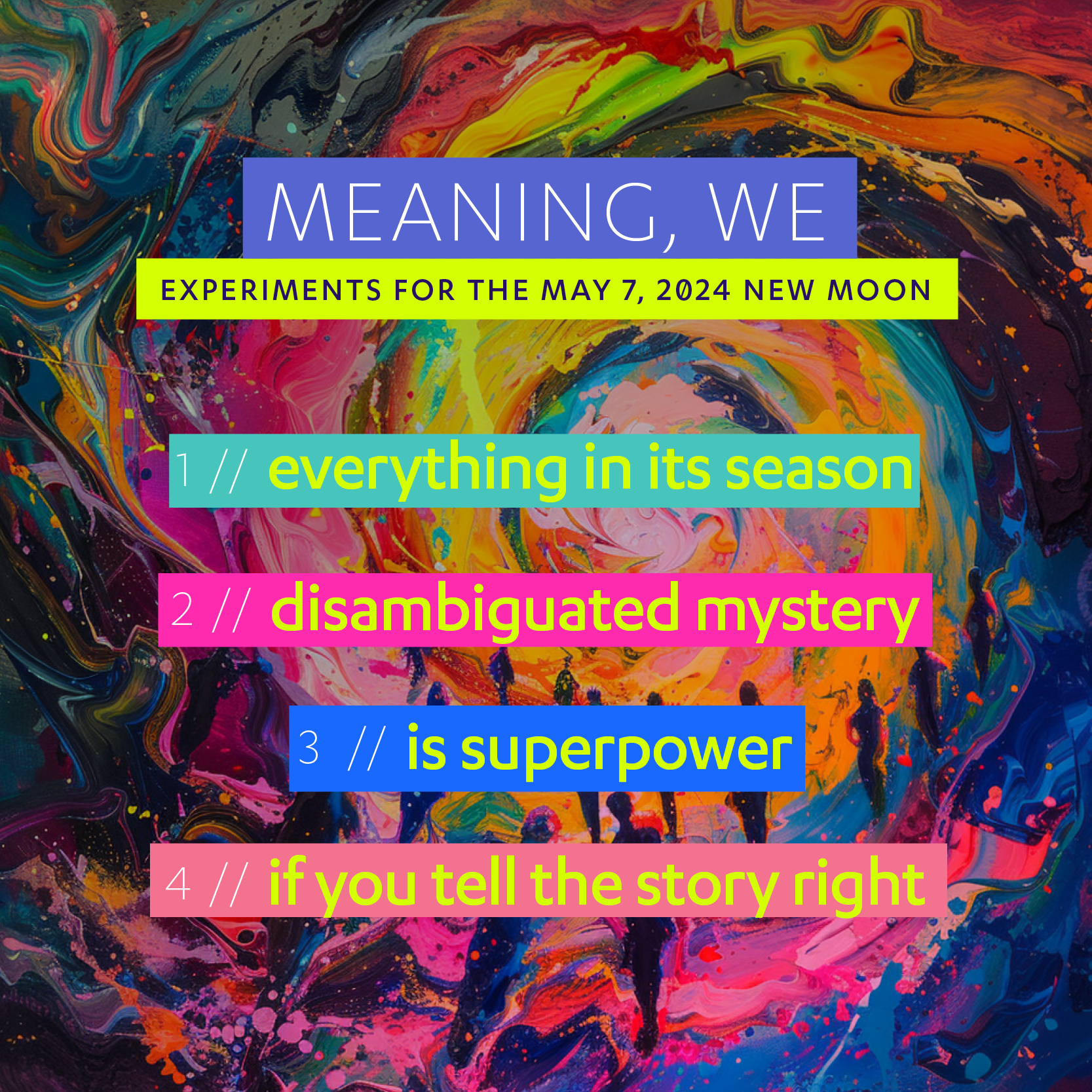 Align Your Orbit is a series of philosophical and somatic experiments to guide ourselves toward intentionality and impact. Synthesized after years of conversations and now with inspirations from MidJourney, we’re fully embracing our cyborg natures. Find delight in these journeys of exploration. If you would like to receive these offerings as an email on the new moon, sign up here.