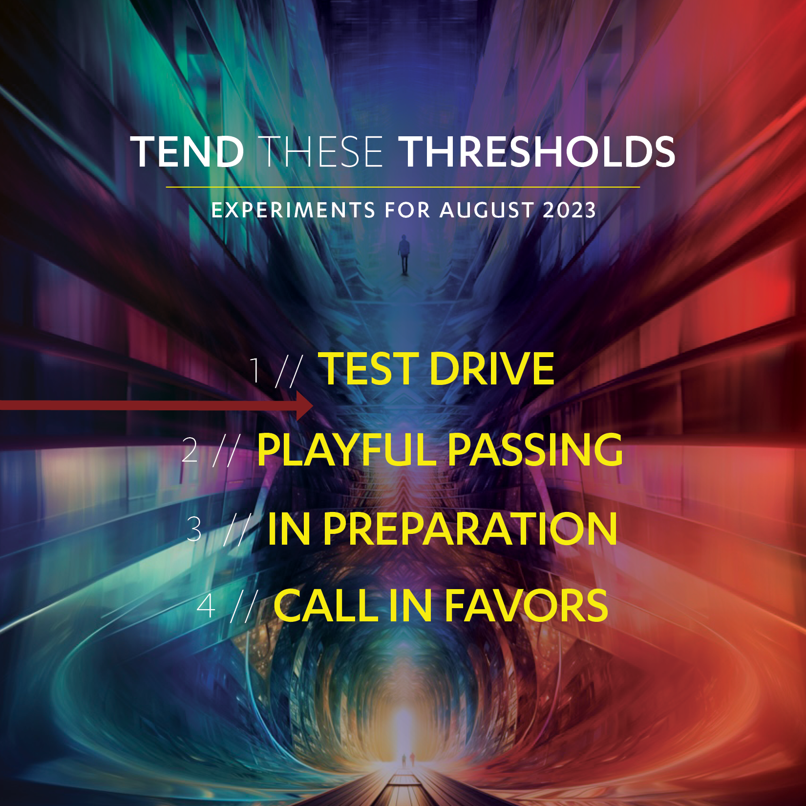 1. test drive – Use time spent traveling to try on new realities. Speak possible futures into being or allow the ones we are letting go slip away. Say what you have been afraid to say. Trust the strength of the ideas you’ve been growing.